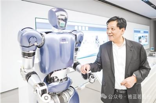 11月5日,在武漢產(chǎn)業(yè)創(chuàng)新發(fā)展研究院展廳,武漢格藍(lán)若精密技術(shù)有限公司董事長(zhǎng)竇峭奇和該公司開(kāi)發(fā)的人形機(jī)器人——?jiǎng)趧?dòng)者1號(hào)(小名“大壯”)。(湖北日?qǐng)?bào)全媒記者 任勇 攝)湖北日?qǐng)?bào)全媒記者 張真真 李源 楊然 成熔興